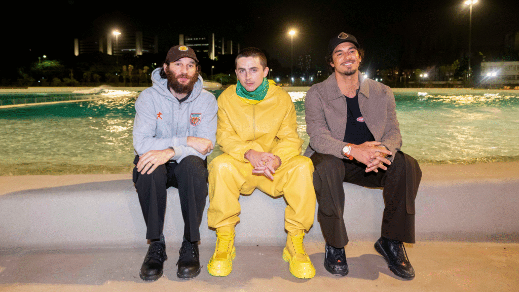 Timothée Chalamet e Gabriel Medina dividem noite especial em piscina de ondas em SP