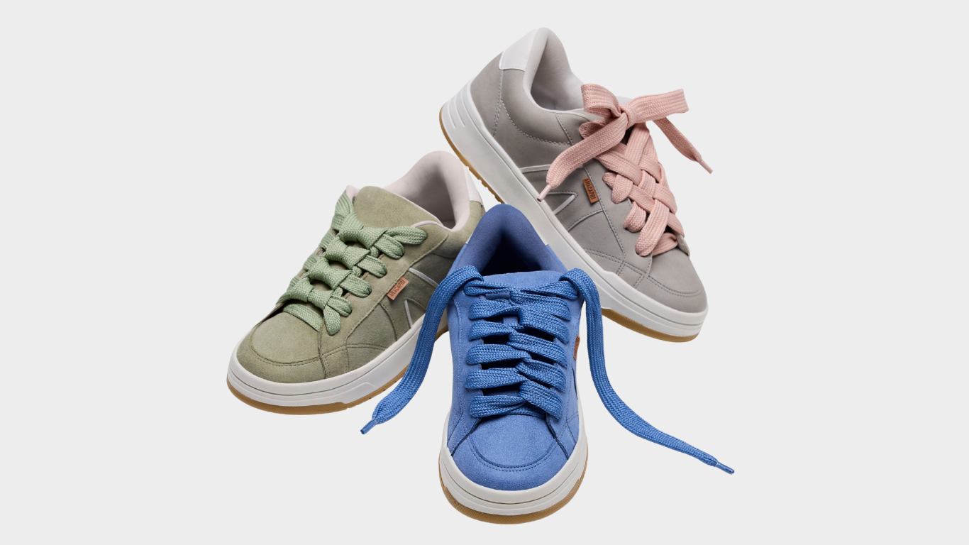 O modelo chega em diferentes combinações de materiais, incluindo versões em eco camurça com cores vibrantes e eco nappa nas opções clássicas preto e branco. A cartela amplia a versatilidade do tênis e dialoga com diferentes estilos, reunindo tons neutros e terrosos — como bege, cinza e cacau — e variações mais expressivas, como mostarda, bordô, vermelho, azul, rosa e verde claro.
