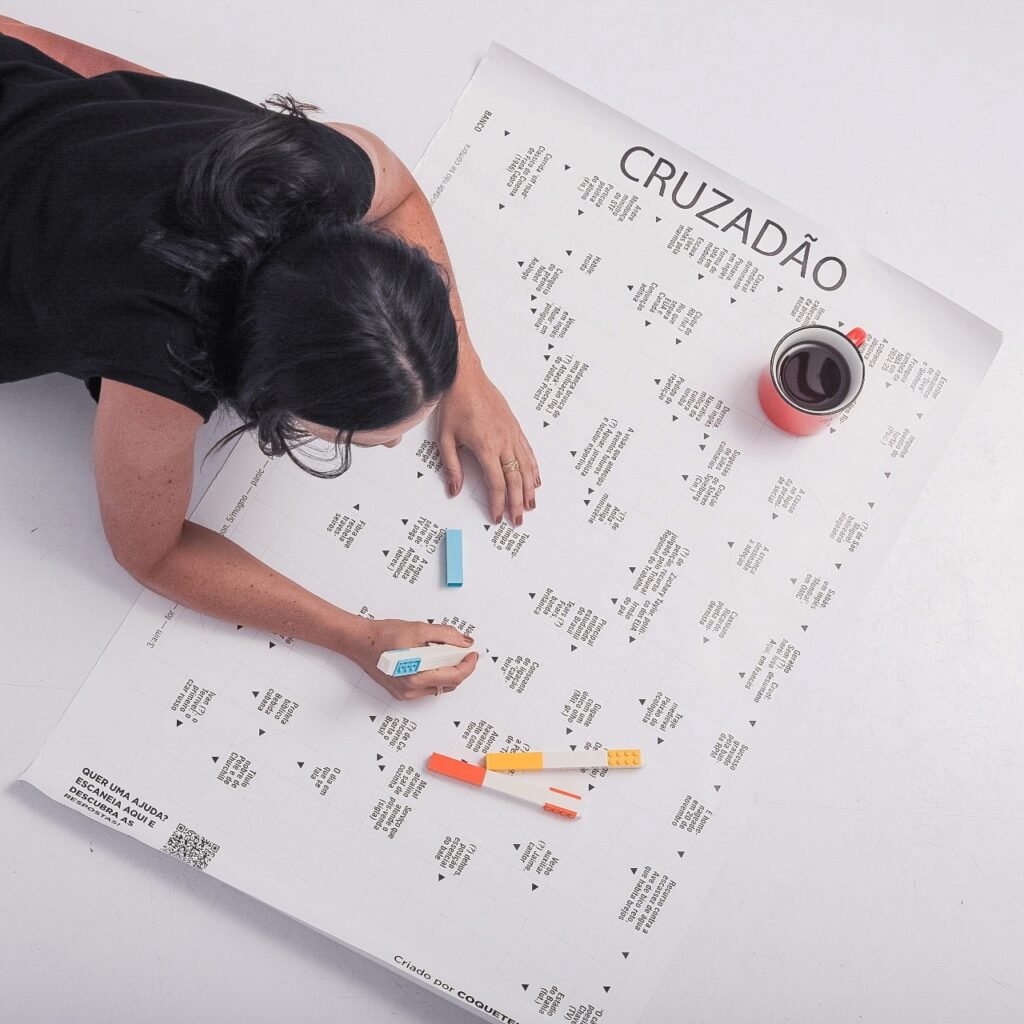 A proposta interativa também aparece nos detalhes — até mesmo no ato de presentear. Em parceria com a Coquetel, a coleção traz papéis de presente que se transformam em experiência: um caça-palavras, batizado de “caça desejos”, e uma versão de palavras cruzadas, o “cruzadão”. Mais do que embalagem, eles convidam quem presenteia e quem recebe a desacelerar, brincar e interagir .
