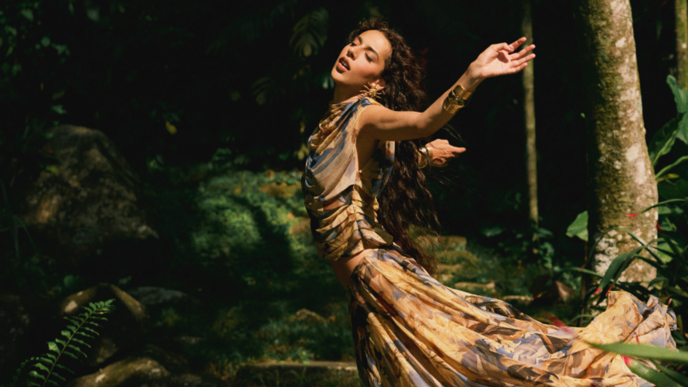 Em meio a uma paisagem brasileira exuberante, Sena incorpora uma energia feminina instintiva e expressiva, ao mesmo tempo enraizada e lúdica. Há uma confiança silenciosa e uma sensibilidade profunda na forma como ela ocupa o espaço e veste as peças da Cult Gaia — de maneira natural, presente e vibrante. Ela personifica o que esta coleção representa: a celebração da feminilidade como algo natural e poderoso. Enraizada no calor, no ritmo e na natureza, a coleção se revela por meio de texturas táteis, silhuetas fluidas e momentos de música, movimento e contemplação.
