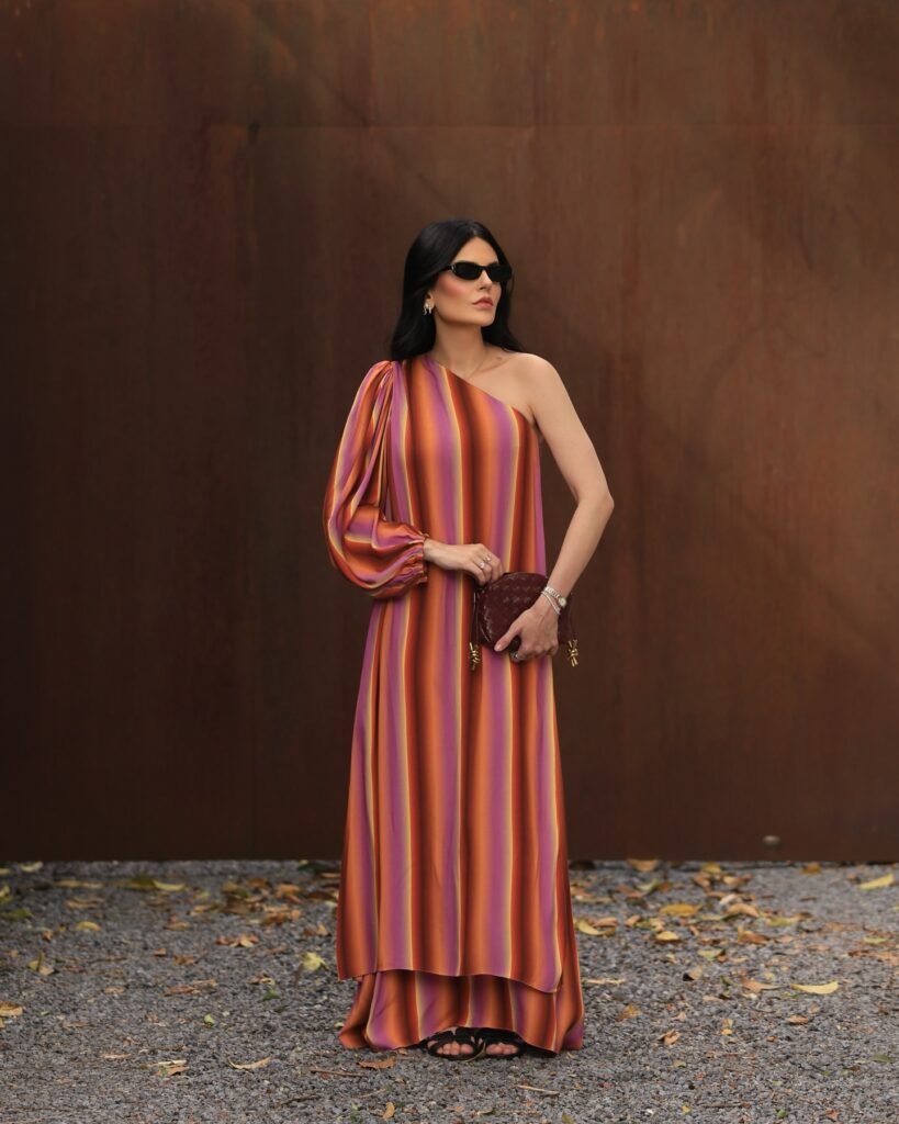Se antes o laranja surgia apenas como ponto de cor, agora ele assume o papel de protagonista. O tom quente ganha ainda mais força nas tendências da temporada e aparece em produções que transitam com facilidade do casual ao sofisticado, provando que é possível ousar, iluminar o visual e fugir do óbvio com muito estilo.