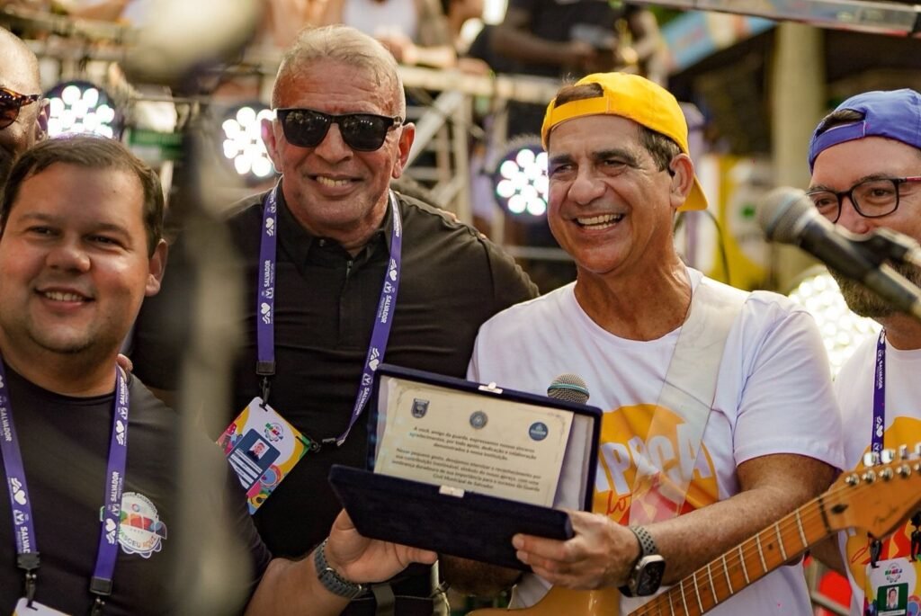 Na passagem pelos camarotes um momento mais que especial para o cantor que recebeu em mãos o título de “Amigo Da Guarda” um prêmio da secretaria municipal de Salvador.