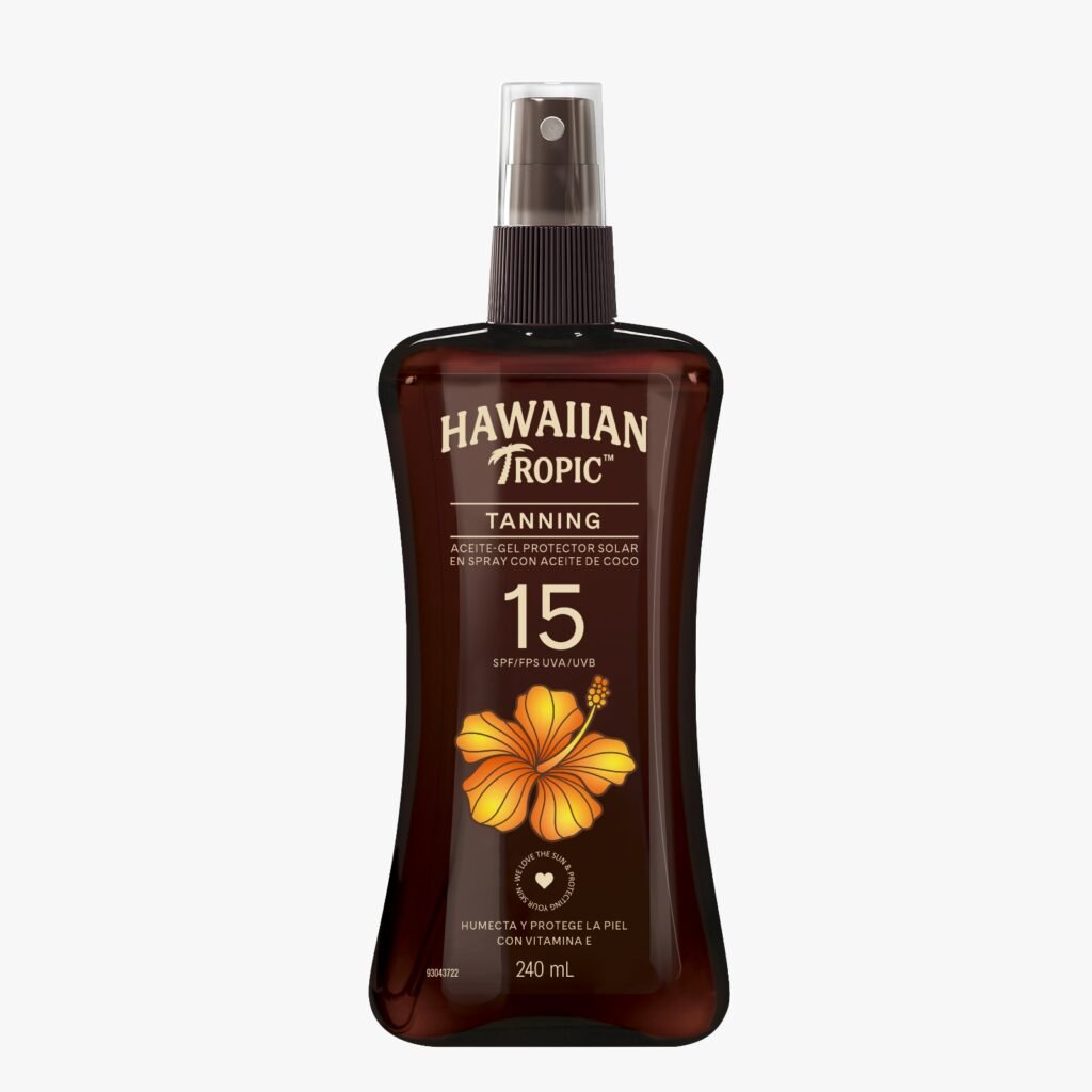 Já o Tanning Coconut Oil FPS 15 combina uma exótica mistura de óleos naturais ricos em ingredientes hidratantes, garantindo um bronzeado mais intenso enquanto nutre e suaviza a pele. De absorção rápida e com aplicação prática, o óleo é altamente resistente à água e ao suor, tornando-se perfeito quem deseja intensificar o bronzeado com proteção. Sua fórmula contém antioxidantes que ajudam a combater o envelhecimento precoce e mantém a pele macia e luminosa, sempre acompanhada da famosa e inconfundível fragrância tropical de coco, assinatura icônica da Hawaiian Tropic.