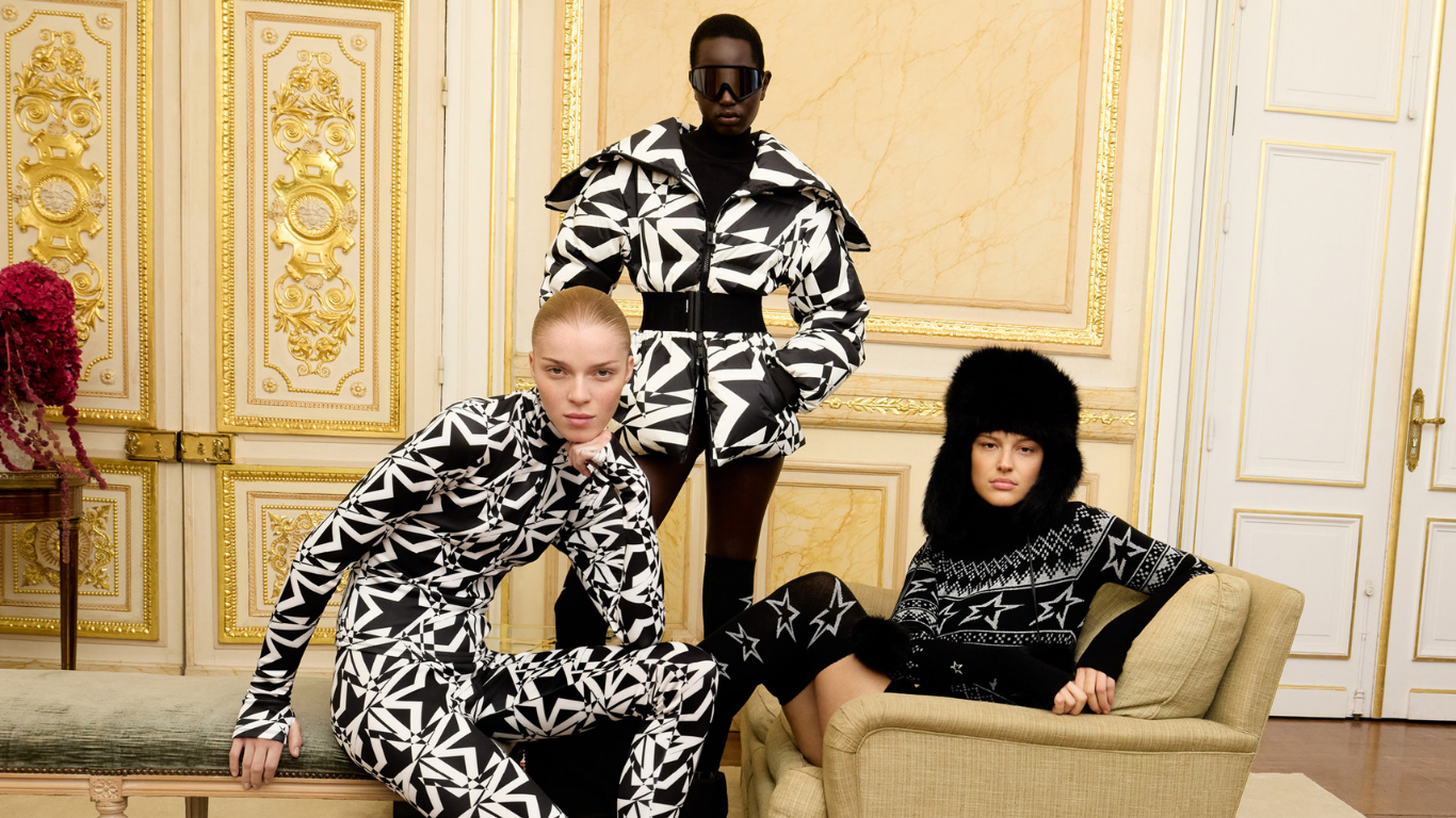 A paleta de cores é exuberante e refinada ao mesmo tempo, com preto, marrom chocolate, vinho profundo, bege, branco e um toque vibrante de amarelo ácido. Os materiais incluem couro lavado, tafetá leve, paetês translúcidos, algodão estruturado, jacquards e tecidos telados.