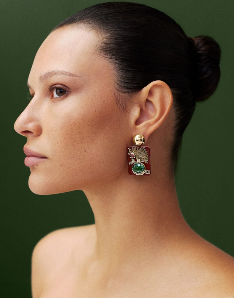 Entre os destaques, está o desenvolvimento inédito de cerâmicas criadas em parceria com a própria Oficina Francisco Brennand, levando a essência da obra do artista ao universo da joalheria. A coleção combina ainda técnicas como a pietra dura, além do uso de madeira, limestones, turmalinas verdes, água-marinha e diamantes. Cada peça traduz a tensão entre o bruto e o precioso, entre densidade e brilho, revelando uma alquimia sensível que une arte, natureza e tempo. O limestone, formado a partir de fósseis e organismos marinhos, surge como metáfora do encontro entre vida e eternidade, testemunho do que já existiu e permanece. Assim como a argila que guarda a memória das mãos do artista, os materiais escolhidos contam histórias ancestrais que se tornam presentes na forma da jóia.