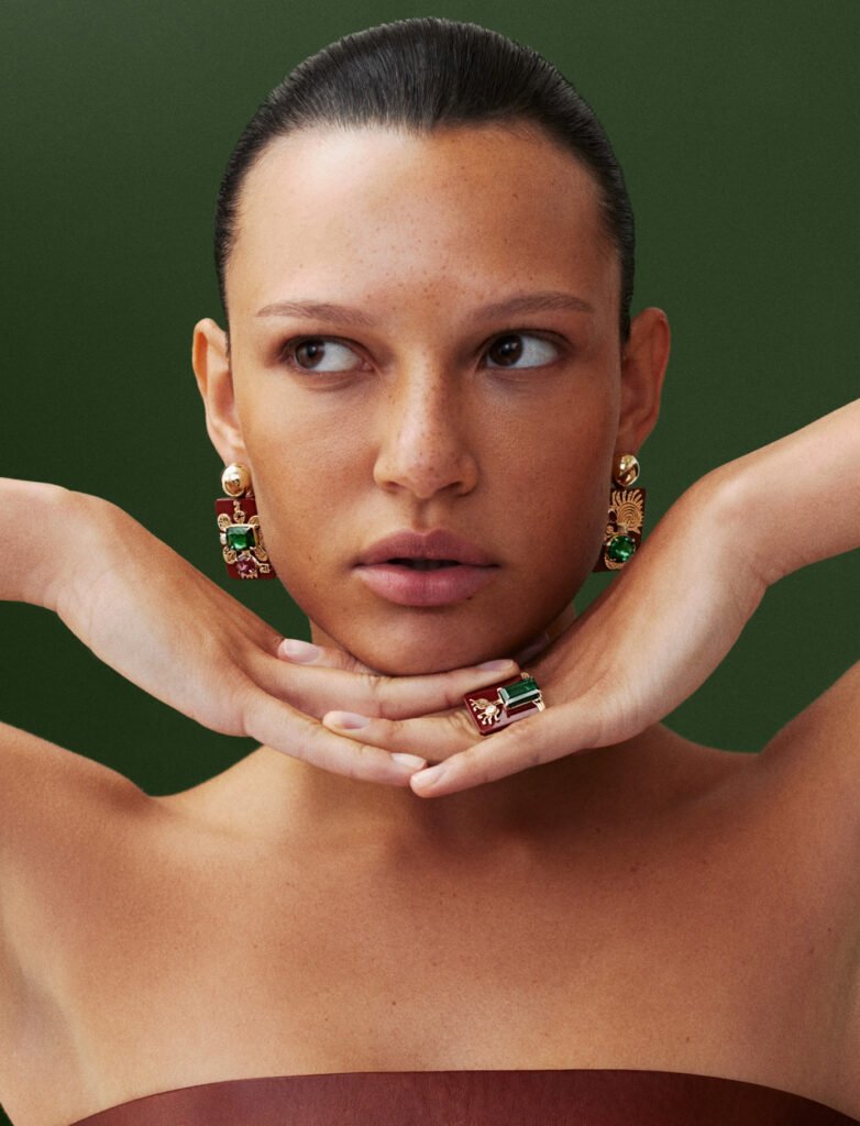 A coleção revisita símbolos fundamentais do universo brennandiano. O ovo e sua “forma perfeita” emergem como ícone da gênese, da eternidade e do renascimento. Outros elementos viscerais, como o pássaro Rocca, deuses imaginários e grafismos cerâmicos, ganham novas interpretações em composições que evocam fogo, terra e vibração primordial. Cada criação é, antes de tudo, um diálogo entre o ateliê e a ourivesaria, entre o sagrado e o profano, entre passado e futuro. “Essa coleção é um ato de domesticar a matéria, transformando minerais em narrativa e poesia”, explica Stephanie.