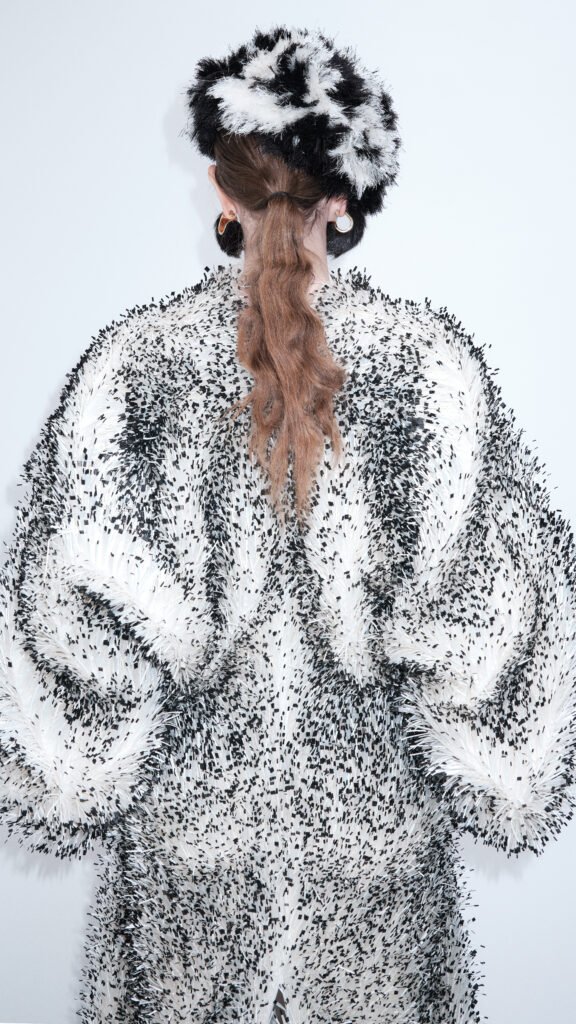 A maneira como uma fachada austera esconde a beleza interior. Há uma curva ponderada nos arquétipos do vestuário diurno, reinventados como algo único. Uma conexão íntima entre as peças e quem as veste. Linhas precisas dão lugar a gestos de extravagância. Uma conversa entre gêneros — e gerações, também. Um toque de floral nostálgico. A bolsa de noite da Nonna. O sapato gasto do pai.