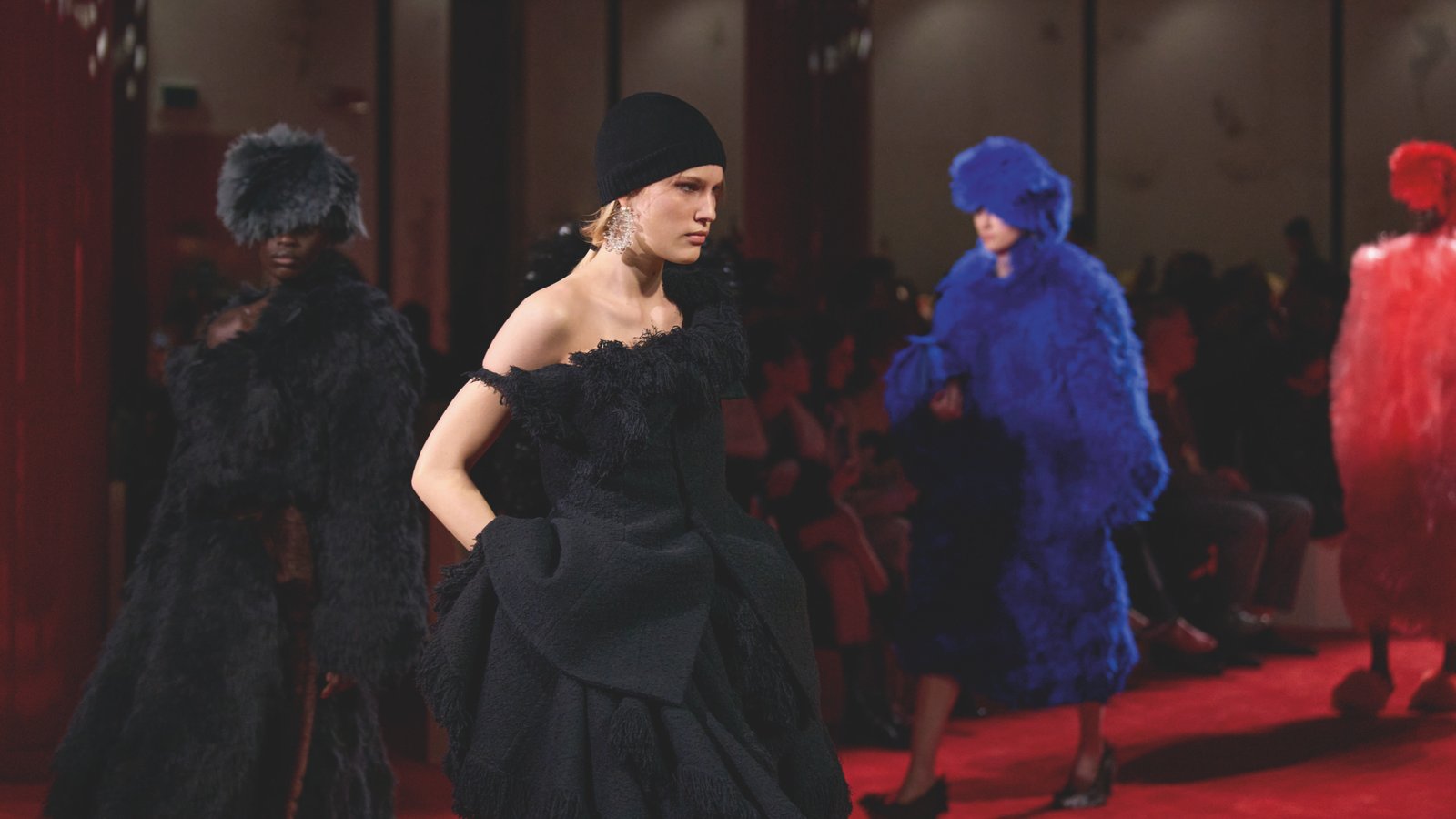 Na ópera, no teatro e no palco público da praça, os milaneses se vestem tanto para a comunidade quanto para si mesmos. Há um sentimento de orgulho em se vestir com confiança e cuidado. Uma brincadeira artesanal de pele sobre pele traz o trabalho manual da Bottega Veneta para imitar texturas de pele em sedas, fil coupé, tricô e fibras técnicas, ondulando em roupas, joias e sapatos. À medida que o refinado evolui para o operístico, há uma sugestão de Maria Callas e Pier Paolo Pasolini, sua arte radical e amor não convencional.