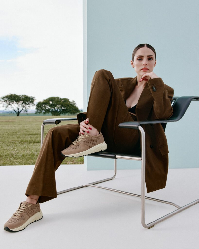 “Eu sempre me conectei com peças que acompanham o meu ritmo, sem abrir mão de estilo e personalidade. Conforto é essencial, mas ele precisa vir com atitude. O tênis representa muito essa forma de viver e se vestir hoje, e a Arezzo traduz isso de um jeito muito natural, transformando o sneaker em um item de expressão, que funciona tanto no dia a dia quanto em produções mais marcantes”, afirma Isabelle Drummond.