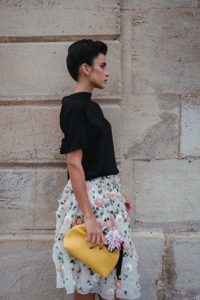 Presente no desfile de Alta-Costura Primavera-Verão 2026 da Dior que aconteceu hoje (26), Livia Nunes surgiu com um visual que dialoga diretamente com o novo capítulo criativo da maison sob direção de Jonathan Anderson. A criadora de conteúdo apostou em uma produção de linhas precisas e elegância silenciosa, composta por blusa preta de shape minimalista e saia midi bordada com flores delicadas, evocando o encontro entre natureza e artifício que norteia a coleção.