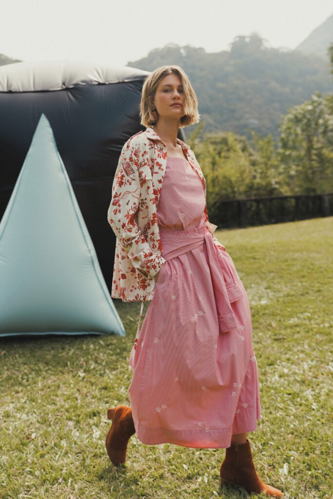Equilibrando nostalgia e modernidade, a coleção traz a estampa Vichy – clássica nos anos 1950 e 1960 – como uma das tendências da temporada. O tecido compõe modelagens atuais, como o corset e a calça barrel nos tons vermelho e branco. Outro ponto alto são as listras, que aparecem em forma de risca de giz nos jeans e na sarja, além das estampas com bordados exclusivos. Já o xadrez ganha destaque em bases flaneladas e sobretintas, tornando vestidos, calças e casacos mais aconchegantes para a temporada de temperaturas mais baixas.