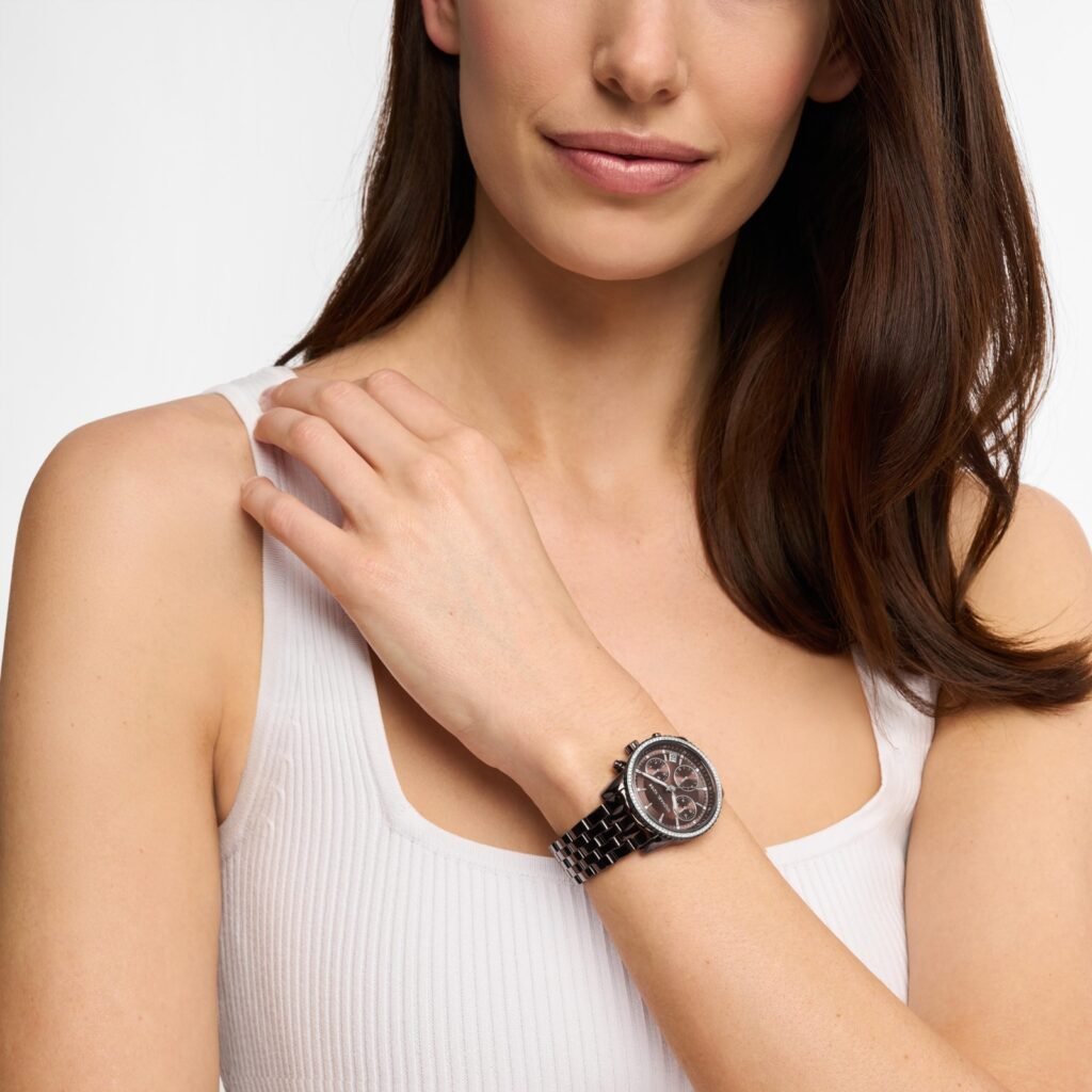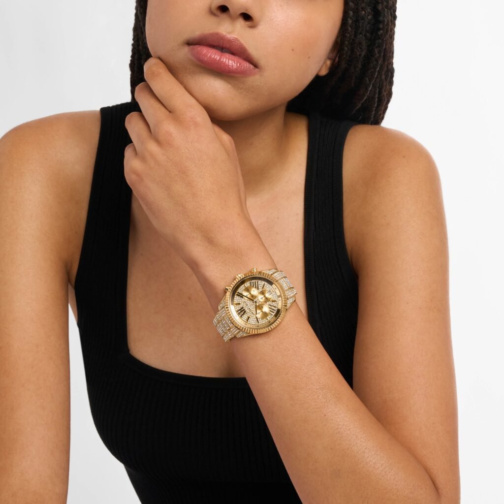 Ao articular brilho, forma e textura em um discurso coeso, a Michael Kors reforça o relógio como um acessório de moda completo, capaz de transitar entre diferentes estilos e desempenhar um papel ativo na narrativa visual contemporânea.