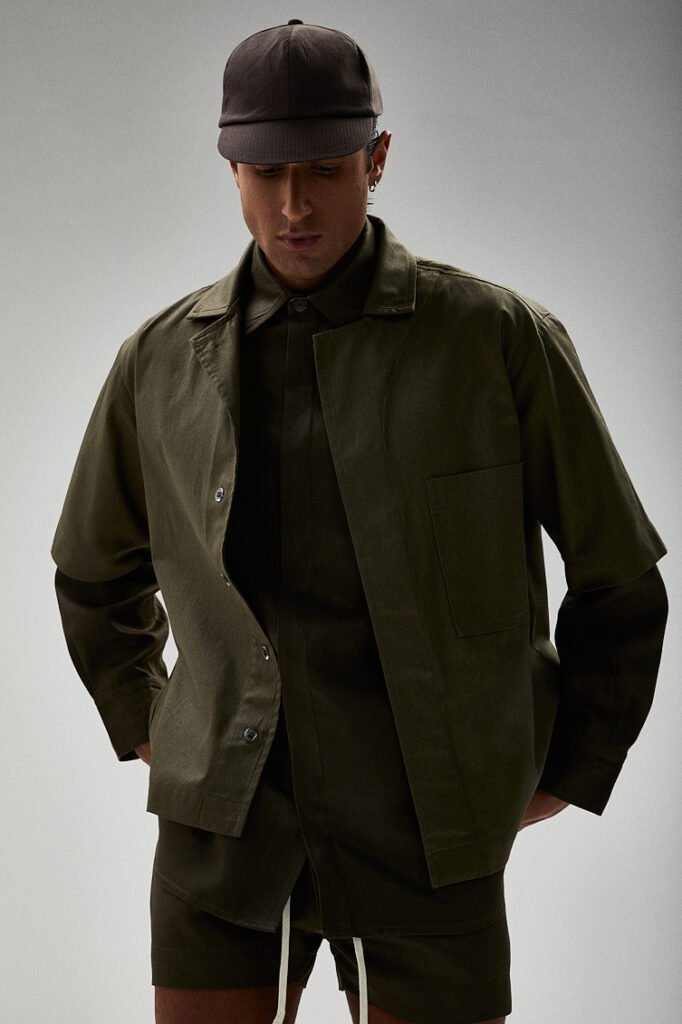 Os best-sellers, como calça e camisa jeans ganham releituras atualizadas. A camiseta em algodão off-white chega com o logo minimalista aplicado em escala generosa no peito, num gesto direto que remete à tradição das grandes casas de moda. Em ano de Copa do Mundo, a polo esportiva oversized traz emblema bordado e base confortável — um aceno sportswear filtrado pela lente minimalista da marca.