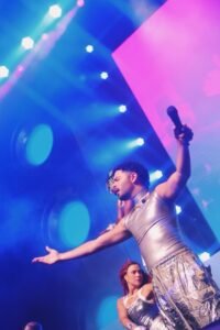 Atração da estreia da temporada do NOSSO CAMAROTE em 2026 nesta sexta-feira, 14, Pedro Sampaio escolheu subir ao palco do camarote fantasiado como “Freddie Mercury prateado”, personagem humorístico interpretado por Eduardo Sterblitch no já extinto Pânico na TV!, da RedeTV!.
