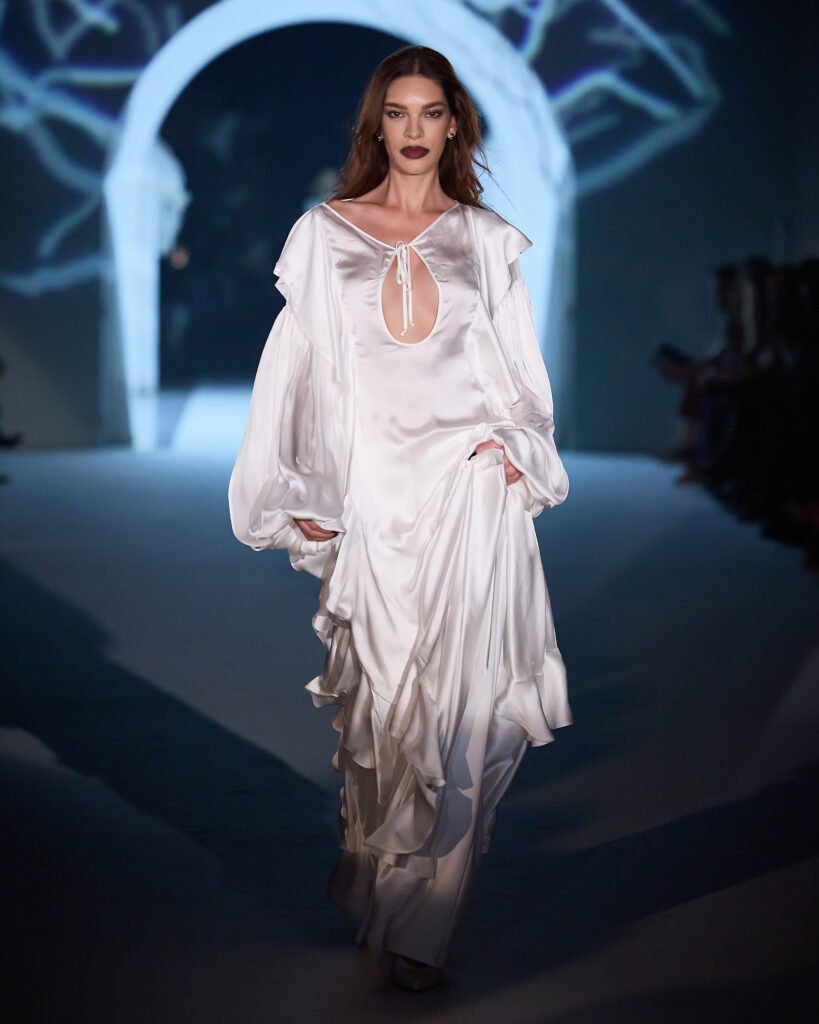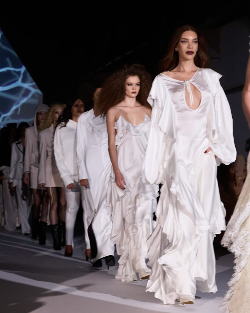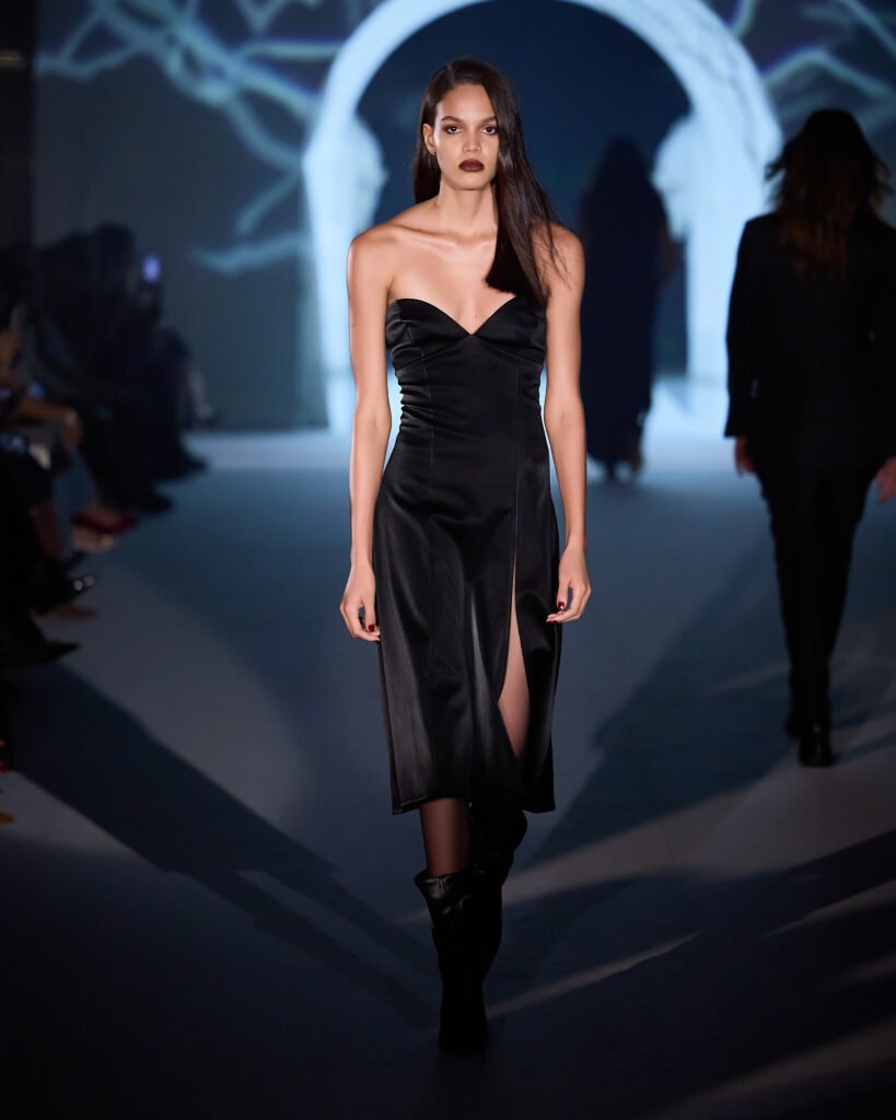 No último dia 25 (quarta-feira), a LINI apresentou sua nova coleção conceito de Inverno, Rebélia, durante desfile em São Paulo. Com um público de 350 pessoas, a marca autoral brasileira de moda feminina trouxe como ponto de partida a Era Gótica, traduzindo uma atmosfera intensa e enigmática na passarela e uma narrativa visual marcada por transformação.Com as modelos Alessandra Berriel, Gianne Albertoni, Alícia Kuczman e Barbara Berger cruzando a passarela, o desfile mergulhou em uma estética que traz a mulher como símbolo de pureza em oposição ao ser autônomo e desejante. A construção de Rebélia mostra o movimento em direção à libertação, em que ela escolhe a luz como ato de coragem, deixando o período sombrio para trás.