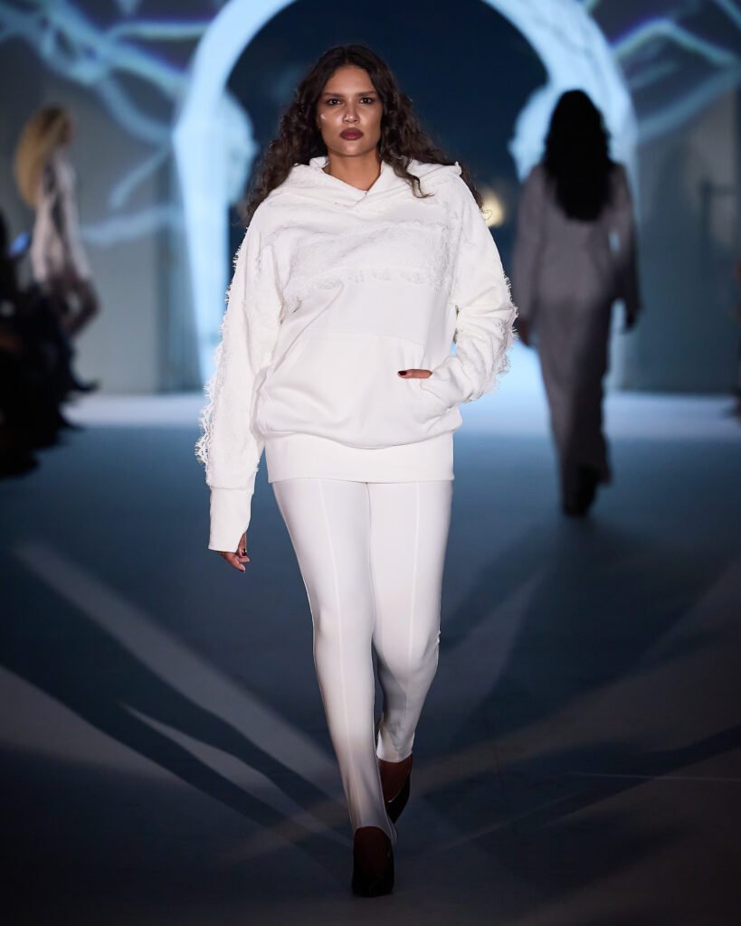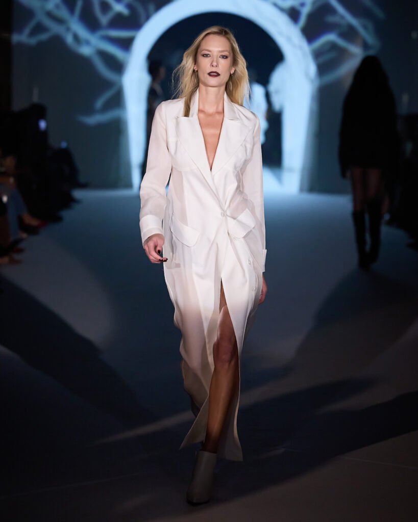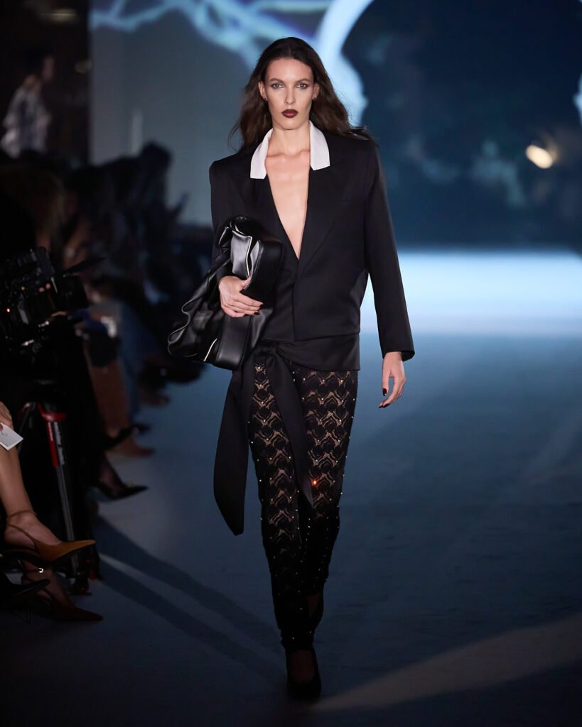Uma moda que acompanha o movimento interno da mulher contemporânea, aquela que se transforma, se impõe e se permite brilhar sem renunciar ao que é. É sobre sair da sombra e escolher, com firmeza, a própria luz”, comenta Aline Guella, diretora criativa e sócia-fundadora da LINI.