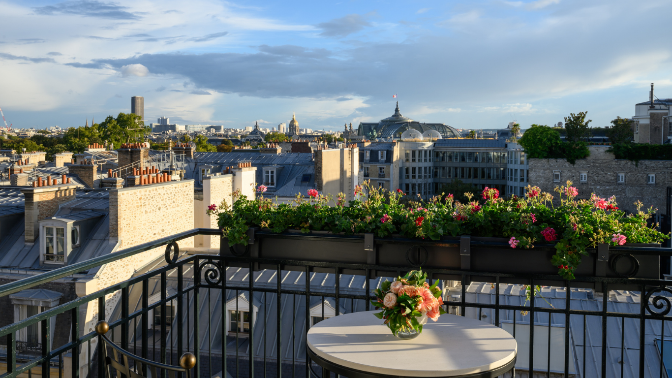 A suíte pode ser integrada a um segundo quarto, formando um apartamento privativo de 235 m² com vista para a Saint-Honoré. Uma cozinha exclusiva permite que os chefs do hotel preparem jantares à luz de velas assinados por Arnaud Faye, chef premiado com o título de Meilleur Ouvrier de France e Campeão Mundial de Pizza em 2024.
