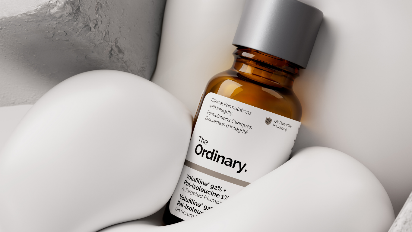 Embora o efeito de “pele preenchida” seja frequentemente associado à hidratação, esse resultado é temporário. O verdadeiro volume da pele vem de estruturas mais profundas, sustentadas por moléculas como colágeno, elastina, glicosaminoglicanos e pelas camadas de gordura que dão suporte à pele. Com o tempo, essas estruturas se degradam devido ao envelhecimento natural, à exposição solar e a fatores ambientais como poluição, levando à diminuição do volume facial. Apesar de existirem diversas soluções voltadas à hidratação, suavização e efeito lifting, poucas fórmulas abordam diretamente a perda de volume — proposta central de Volufiline 92% + Pal-Isoleucine 1%, primeira fórmula direcionada de The Ordinary desenvolvida para atuar especificamente nesse aspecto.