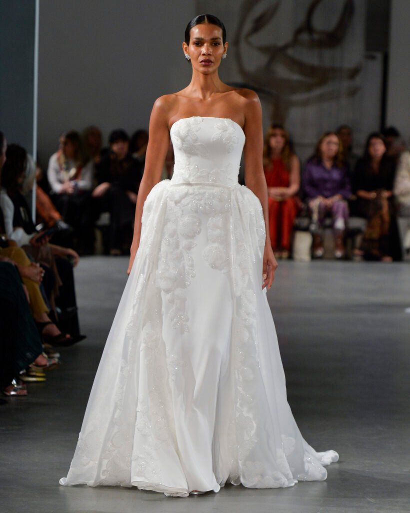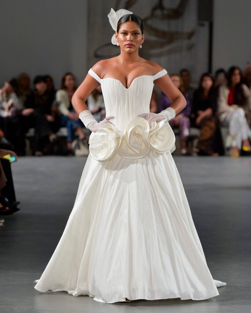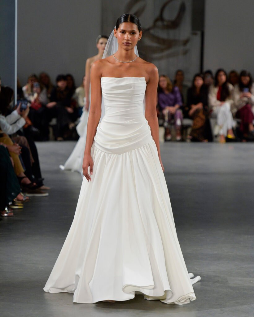 Os vestidos transitam entre o clássico e o contemporâneo, explorando tecidos atemporais como crepe, shantung e renda, reinterpretados em recortes e texturas orgânicas. O resultado é uma leitura fresca do universo das noivas, onde tradição e expressão artística coexistem de maneira harmônica e autoral.